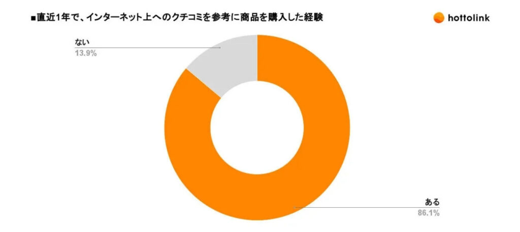 口コミは企業にとって無視できない影響力を持っています。調査によれば「直近1年でインターネット上の口コミを参考に商品を購入した経験がある」と回答した人は86.1%にのぼります